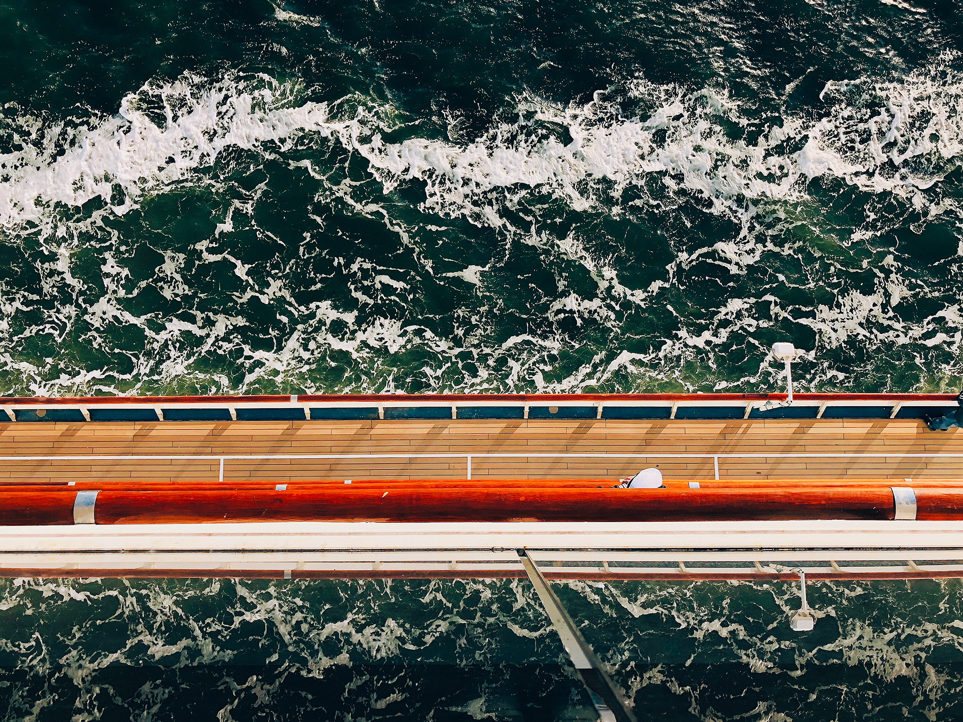 I love to go on cruises and have been lucky enough to travel all over the world. I started this series several years ago. While most people are looking off to the horizon, I shoot straight down — showing how interesting things can get if you just change your perspective. Select images from this series have been acknowledged by The Richmond Ad Club, the 1839 Photography Awards, and Travel + Leisure magazine.